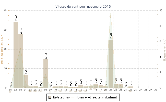 | min | max | moy | Vitesse (rafales) | Secteur | ||